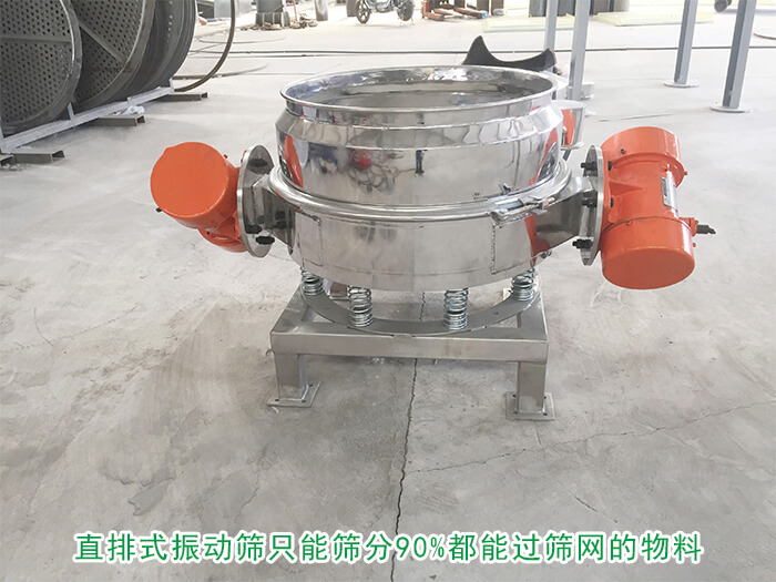 直排式振動篩:一般裝配有一臺到兩臺臥式振動電機,分單振源和雙振源兩種,單振源作用到物料上主要產(chǎn)生上下振動,不具備自動排料功能,雙振源能在篩面上產(chǎn)生渦旋運動,具有自動排料功能,是以振動電機為激振源,在電機的帶動下物料在篩框上做橢圓運動,快速并往復(fù)的實現(xiàn)物料過網(wǎng)動作。