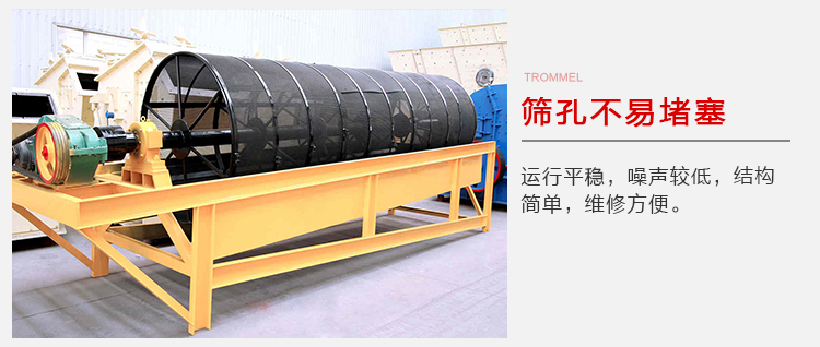 電機(jī)驅(qū)動滾筒軸線作旋轉(zhuǎn)運(yùn)動,減速機(jī)調(diào)節(jié)筒體以一定的轉(zhuǎn)速旋轉(zhuǎn),物料由進(jìn)料口進(jìn)入筒體內(nèi),在旋轉(zhuǎn)產(chǎn)生的離心力作用下,物料在筒內(nèi)翻滾,自上而下通過分級篩網(wǎng)析出,由于篩網(wǎng)分級尺寸不同,物料逐漸被分離篩選,粒度合格的物料經(jīng)篩分后落入到各自的漏斗,然后由人力方式運(yùn)出或通過輸送機(jī)自流送往成品站。合格產(chǎn)品經(jīng)過下端出料口排出,顆粒較大,分選不合格的產(chǎn)品經(jīng)另一排料口排出,筒內(nèi)清理裝置,使篩網(wǎng)不宜被阻塞。