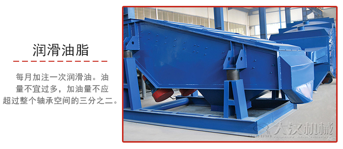 5、高效振動(dòng)篩若采用潤滑脂潤滑,應(yīng)每月加注一次潤滑油。油量不宜過多,加油量不應(yīng)超過整個(gè)軸承空間的三分之二,否則會(huì)引起軸承溫度過高。