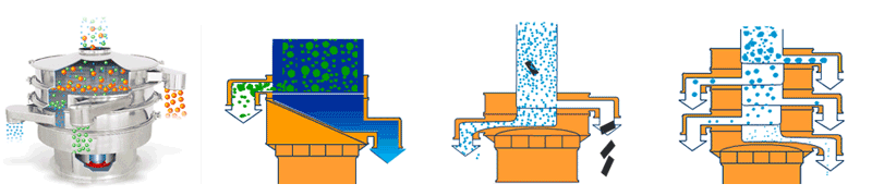 | 應(yīng)用 | 要用于物料原料的篩分和成品的最終生產(chǎn)檢驗,可以去除產(chǎn)品中的結(jié)塊和污染物,一次操作最多可提供5級分級。 | 適合高粘性、高靜電細(xì)粉,篩分精度可以提高80%以上,產(chǎn)量提高2-5倍。 | 模擬人工篩分的動作,產(chǎn)生了水平和投擲的三維滾動運動,適用于500目以內(nèi)的細(xì)粒狀物料,篩分精度提高了90-95%,產(chǎn)量是圓形振動篩的5-10倍。 | 適合一般的粗略篩分或除雜,的進、出料口設(shè)計在同一垂直方向上,這樣會加快物料的排料速度,處理量是普通圓形振動篩的2-5倍。 | 經(jīng)常用在液體過濾行業(yè),可去除液體或懸浮物中存在的不需要的顆粒,當(dāng)然也是可以作為粉末除雜。可用在處理量較小的工廠或小型作坊。 |