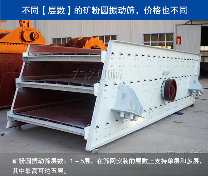 礦粉圓振動篩層數(shù):1 - 5層,在篩網(wǎng)安裝的層數(shù)上支持單層和多層,其中層數(shù)可達(dá)五層。